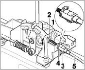 - Press the retaining clip -4- together and carefully pull the adjuster -3- upward out of the support bracket.