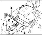 - Connect the plug on the adapter lead -X- to the existing plug -6-. Then secure this plug connection firmly to the red lead -A- with a tie-wrap -B- so that it can not slip.