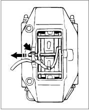 3. Pull out the warning contact wire on the brake caliper and remove the warning contacts from the brake pad plates.