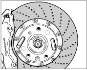 PCCB (Porsche Ceramic Composite Brake): Danger of material damage during wheel removal/installation (danger of damage to brake discs)!