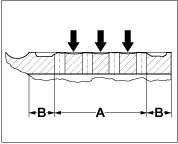 ^ As opposed to smooth brake discs, by which the minimum thickness is measured in the middle of the disc (effective friction radius), in the case of perforated brake discs, the minimum thickness must be measured on the inner or outer friction surface track -arrows-, whichever is most worn.