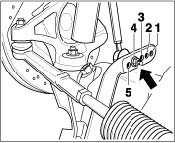 The front stabilizer with 26.8 x 4 mm diameter was adjusted (fitted) at the production launch to the center position (position 3). This setting was modified in the current model year 2002. New/current adjustment: Position 4 -arrow-. The new adjustment (Position 4) can also be used -arrow- for vehicles with a Stabi center position (position 3)!