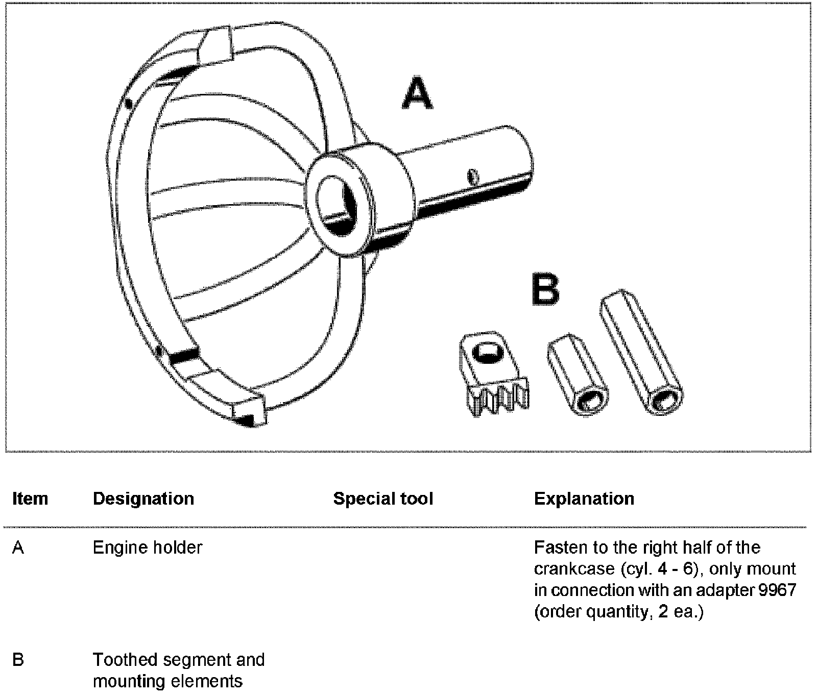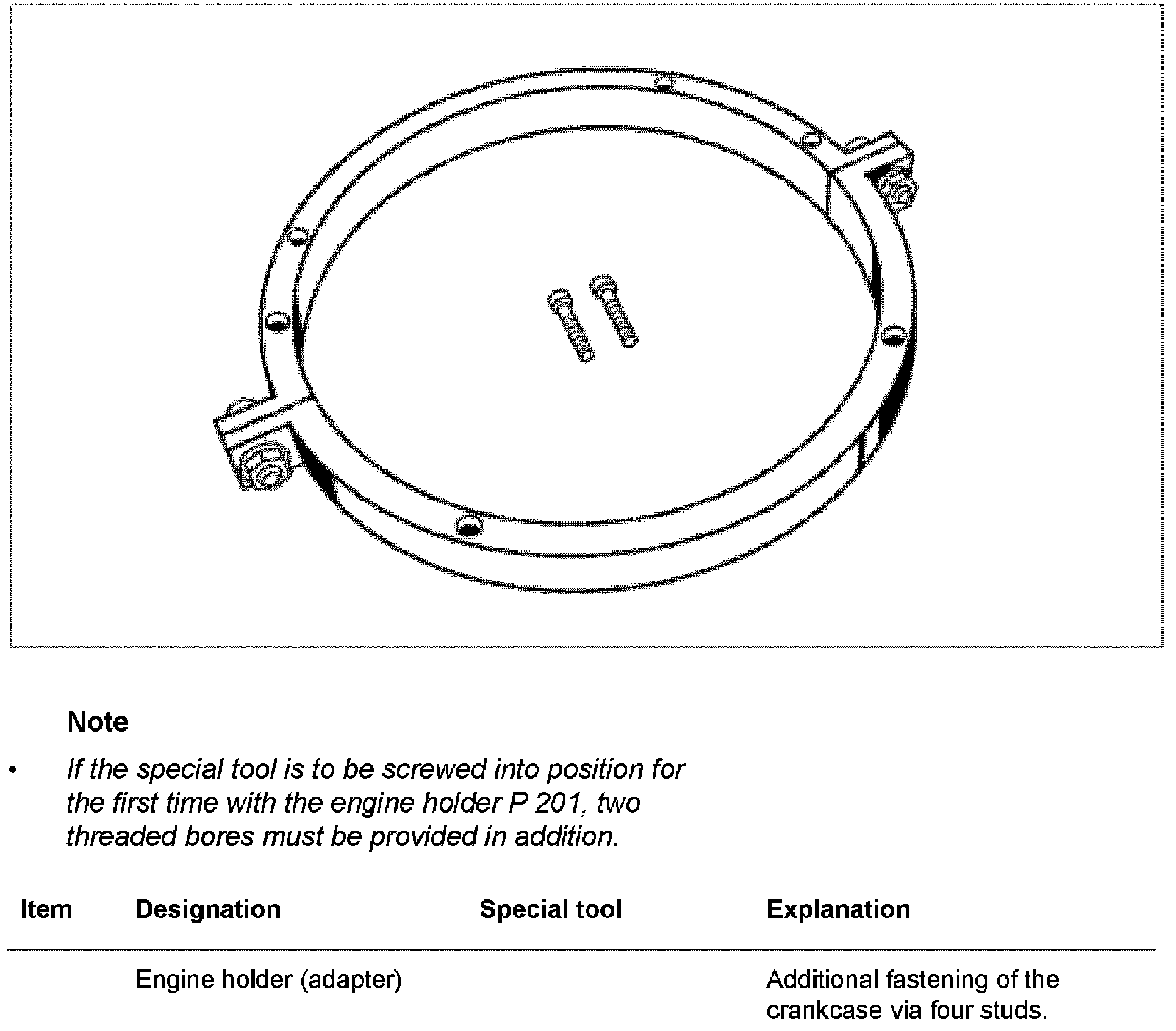 ^ If the engine holder special tool (adapter ring) 9667 is used for the first time, 2 threaded bores must be made in addition.