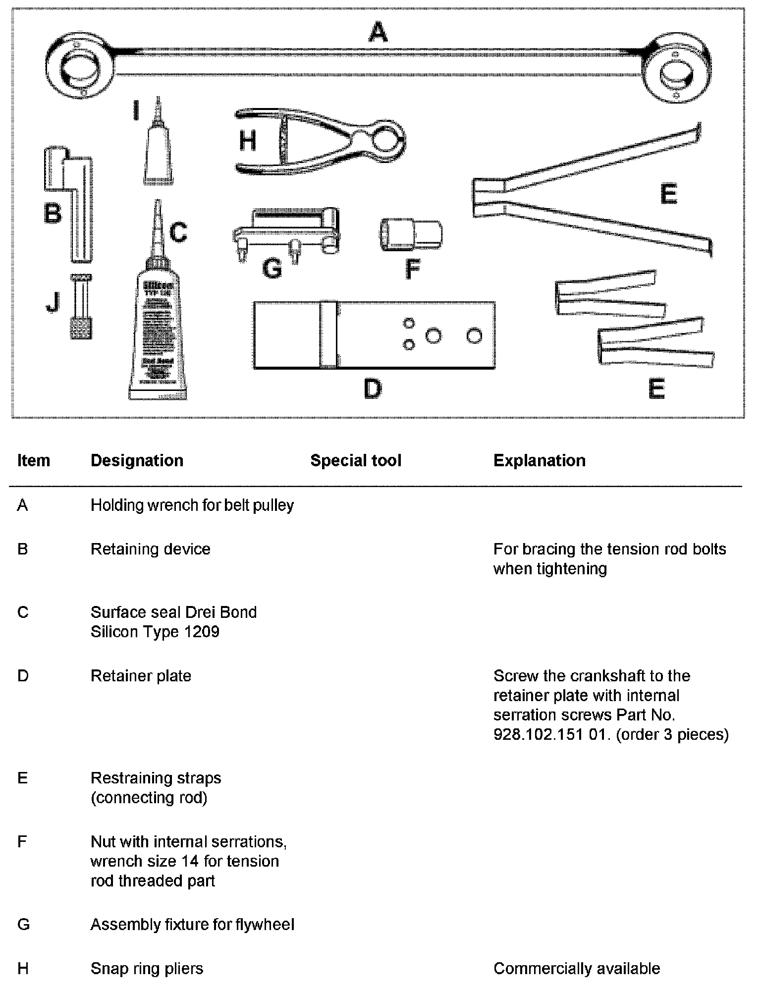 ^ When tightening the tension rod bolts without a retaining device 9662, it is essential that a second person braces the bolts.