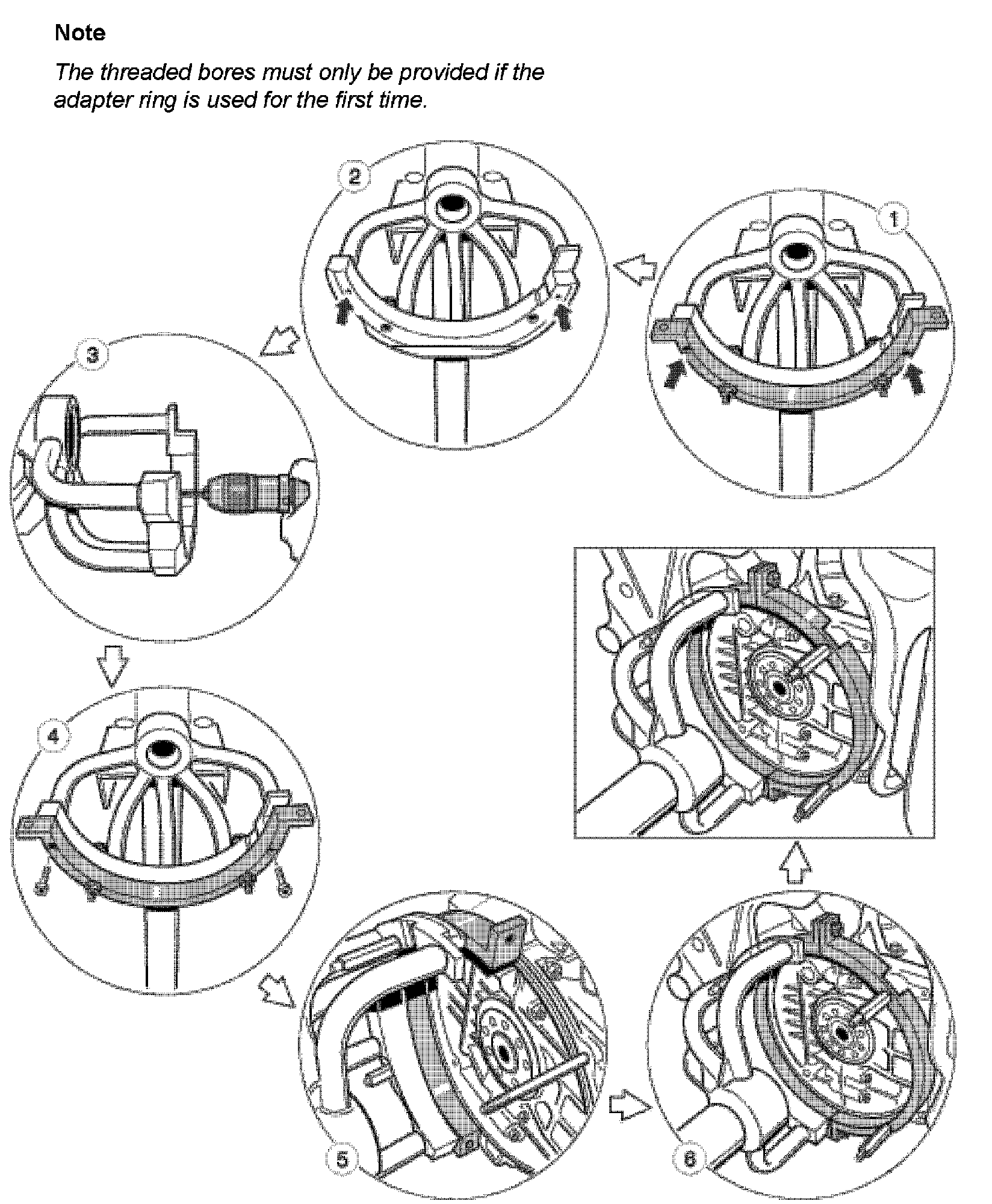 ^ The threaded bores must only be provided if the adapter ring is used for the first time.