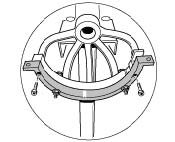 1. Centering adapter on engine holder. Fasten the adapter half with the already made bores -arrows- with two auxiliary screws M10 x 60 onto the engine holder. Spot-drill or countersink the engine holder slightly through the bores in the adapter ring using a drill bit � 6.5. The adapter ring serves as the drilling template.