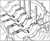 7. Insert new crankshaft bearing shell halves into the crankcase. Oil the bearing surfaces.