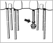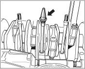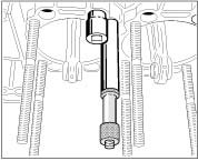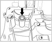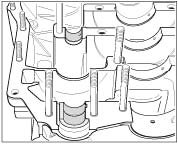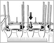 - Insert the prepared tension rod bolts into the right crankcase half from below as far as they will go and retain in this position.