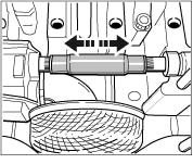 18. Check dumb-bell shaft. The dumb-bell shaft must be easily movable in axial direction. If necessary, re-loosen the oil pump with the intermediate shaft and shift the dumb-bell shaft.
