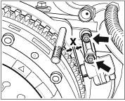 42. Check distance -Dimension X- between toothed ring and pulse sender and adjust if necessary. Dimension X 1.0 ± 0.2 mm