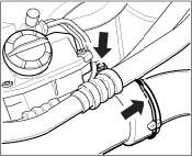 2. Undo hose clamp between the air cleaner housing and intake manifold.