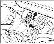 ^ Open the omega clip on the left side of the air cleaner housing and take out the electrical wire of the hot film mass air flow meter.