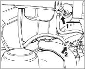 - Fasten fuel filter, fuel supply line (1) and fuel return (2). Tighten the fuel supply line to 30 to 35 Nm (22 to 26 ft. lbs.) and the fuel return line to 25 Nm (19 ft. lbs.).