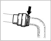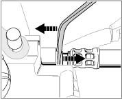 - Insert tool between line and the red unlocking ring and unlock by pulling black line to the right and simultaneously pressing the tool against the red unlocking ring.