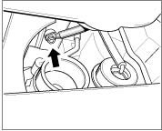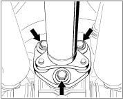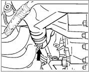 ^ Remove hexagon-head bolts in order to avoid damage to the reference mark sender cable or the oil tank when the engine-transmission unit is subsequently lowered.