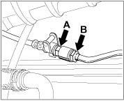 - Undo the fuel supply line (1) and fuel return line (2) in the engine compartment (left).