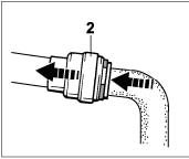 - Push the inner sleeve -(arrow 1)- against the outer sleeve -(arrow 2)- and pull off both sleeves together in the direction of the arrow.