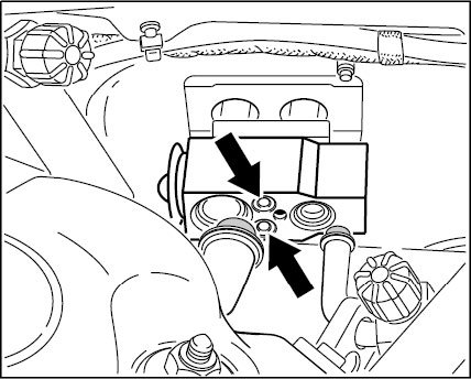 3. Detach the air-conditioning lines at the expansion valve. Immediately close connections and lines with plugs so that they are air-tight.