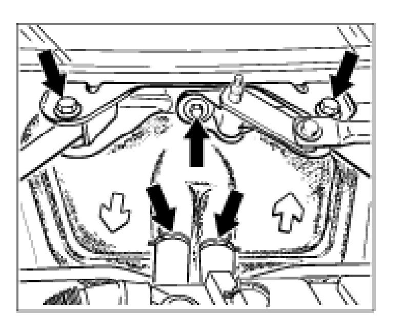 4. Loosen right dome strut and bracket at the cowl frame and remove -(arrows)-.
