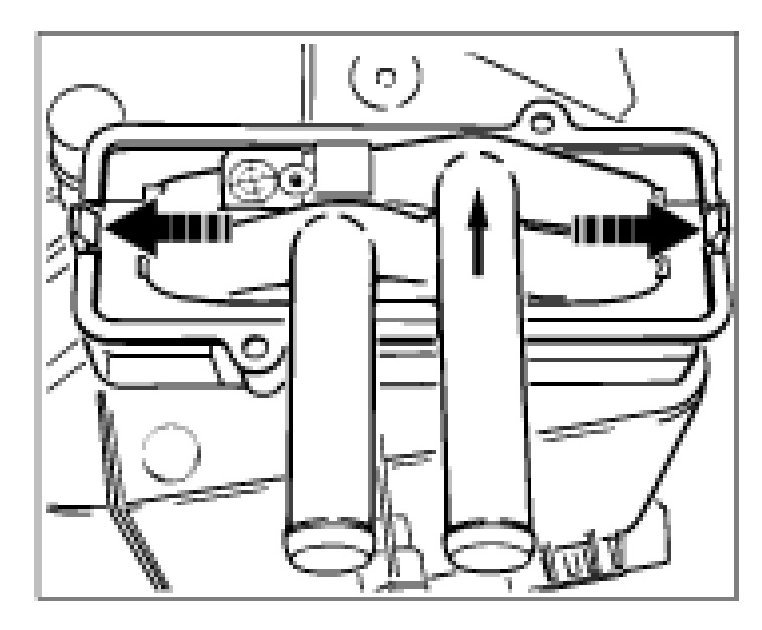 7. Release heat exchanger -(arrows)- and pull it up and out.
