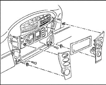 10. Remove the radio and heating/air-conditioning controller. Unclip the switch panel on the left and on the right. Disconnect the electrical plug connections. Undo the retaining frame in the centre and remove.