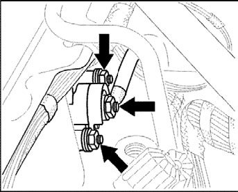 23. Loosen battery positive connection at the current distributor and current distributor -arrows- at the firewall cover.