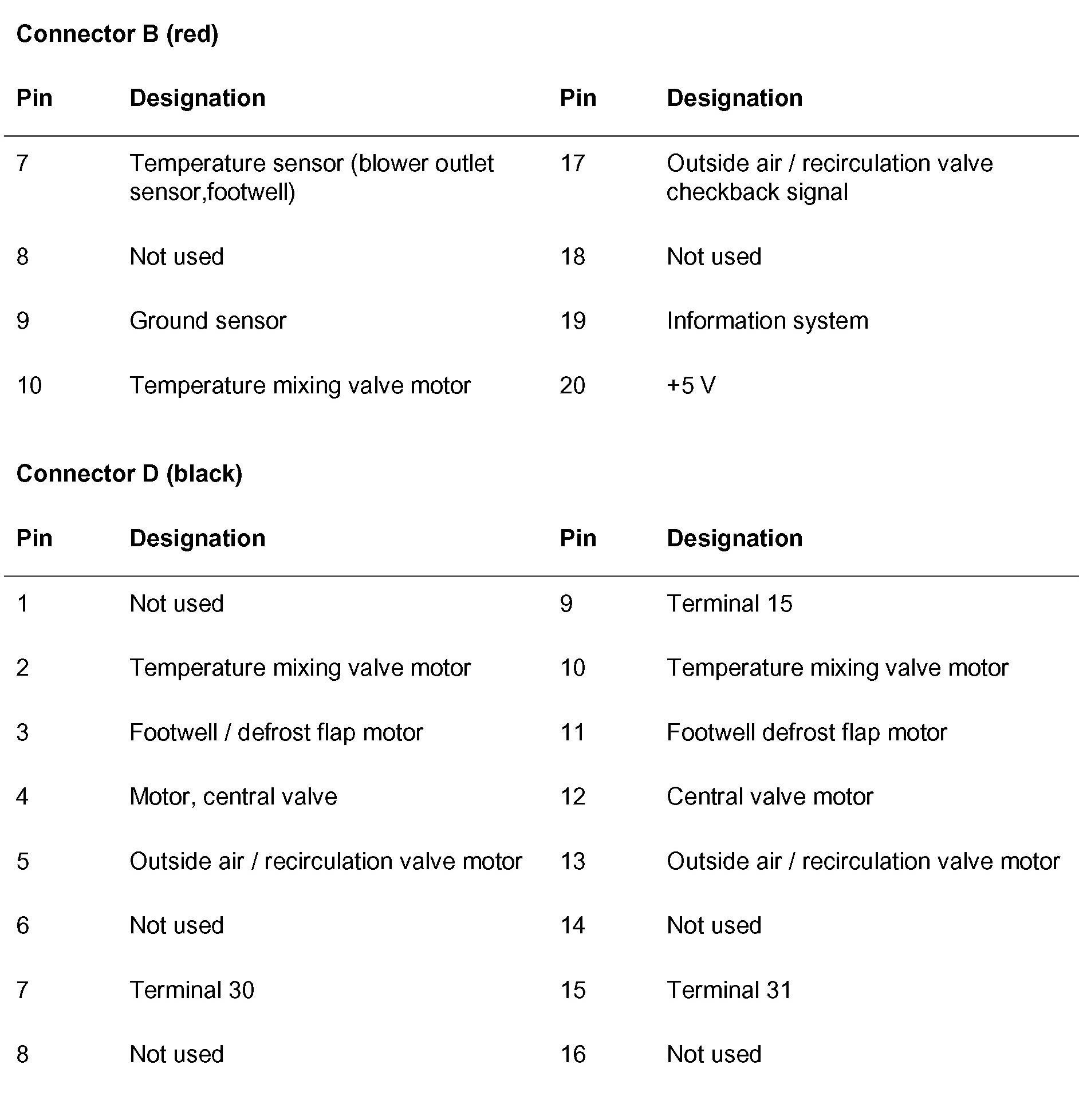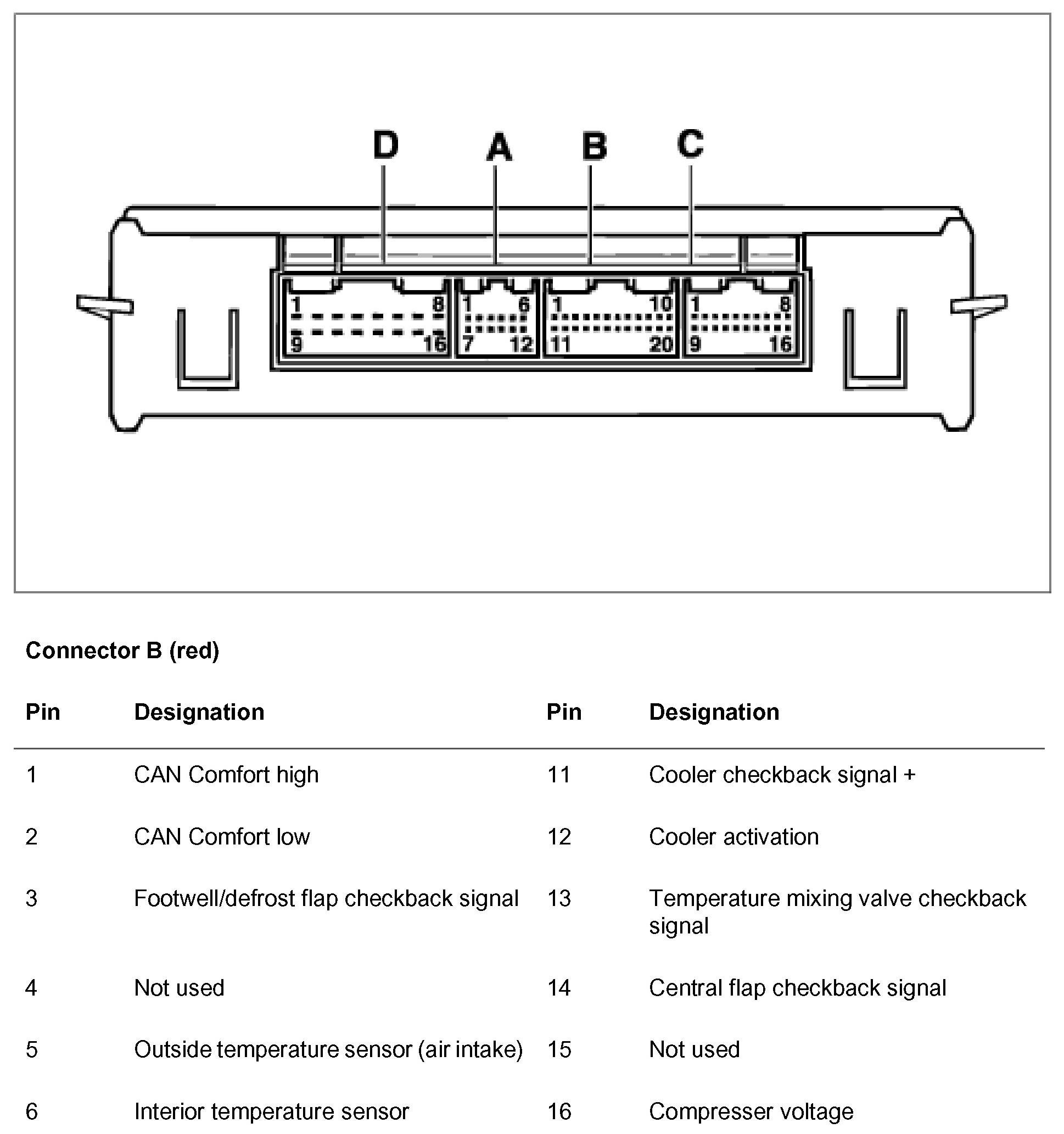 The two plugs, A and C, are replaced by networking (used by CAN-Comfort Bus). The signals required for function or control are exchanged via the CAN Bus lines CAN Comfort high and CAN Comfort low.