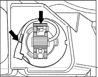 3. Disconnect electrical plug connection -(arrow)- from the defective bulb.