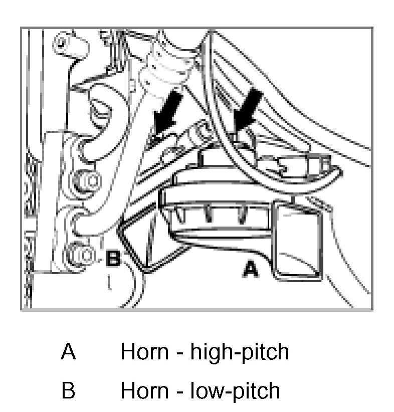 - The entire front spoiler must be removed in order to remove the low-pitch horn.