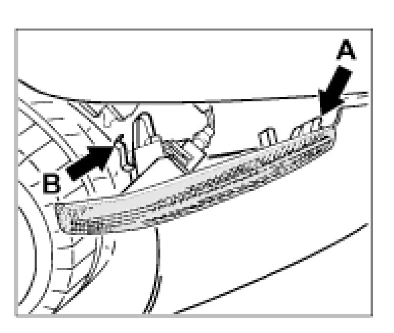 1. Insert a screwdriver in the upper slot between the wheel housing liner and the direction indicator light housing.