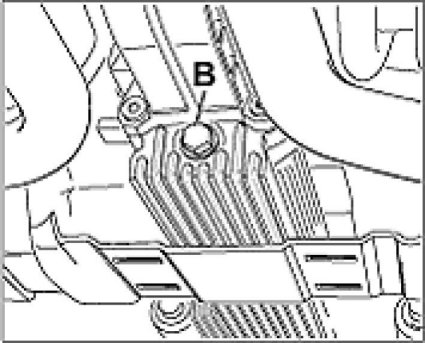 3. Unscrew the oil drain plug -B- and drain the oil with the vehicle horizontal.
