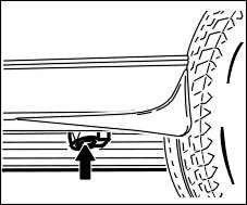 ^ Lift the vehicle only at the take-up points shown in the figure!