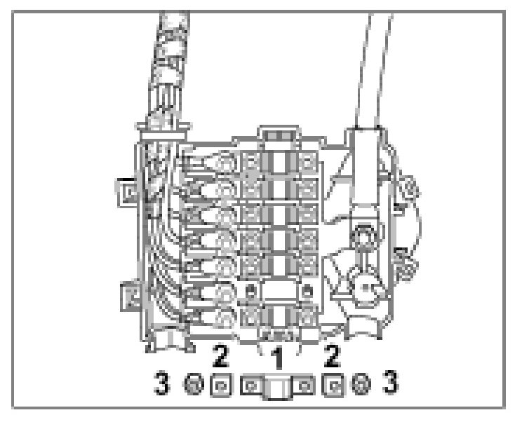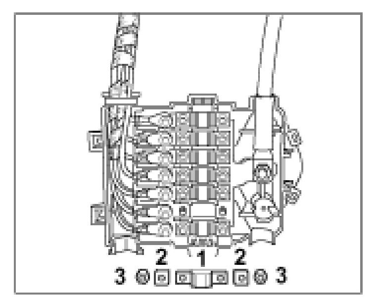 1. Insert new fusible element -1-, using new washers -2- and new hexagon nuts -3- M 5. Tightening torque: 4 Nm (3 ftlb.).