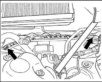 - The combination wires for ABS and BVA are integrated in the wiring harness. In the event of damage, the integrated wires can be disconnected and replaced by repair wires. The disconnection points are located at the front left and front right above the radiator tank. After repair, the following function tests must be performed: