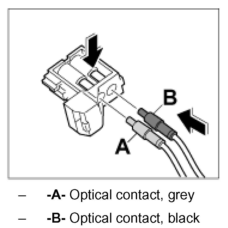 - The optical waveguide and the plug copnnections must not be brought into contact with liquids such as water, leakage fluids, preservers, anti-freeze fluids or cleaning agents. This may impair the function of the MOST system or even complete system failures. Even plug connectors with connected protective caps must not be brought into contact with the listed liquids.