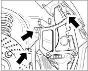 4. Undo the front fastening. Unscrew the fastening nut and the two fastening screws.