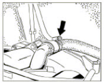 15. Undo the upper fastening screw -right arrow-. Lift the intake pipe out of the shaft bolt -left arrow- and remove towards the rear of the vehicle. Remove the seal.