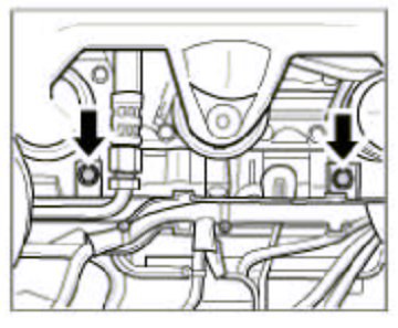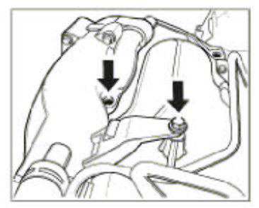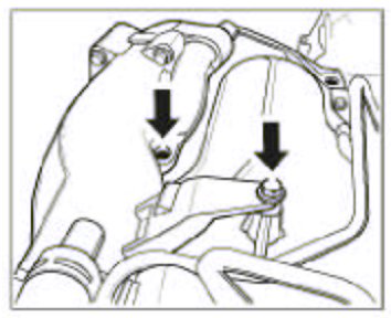 14. Fasten the fuel collection pipe. Put on and tighten the two M6 screws -arrows- on the fuel collection pipe for this purpose.