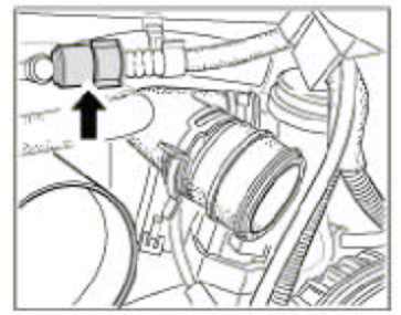 8. Undo the hose -arrow- on the left pressure pipe. To do so, undo the hose clamp and pull the hose -arrow- off the pressure pipe.