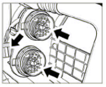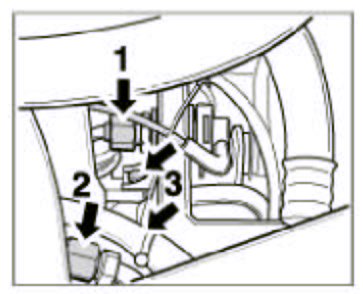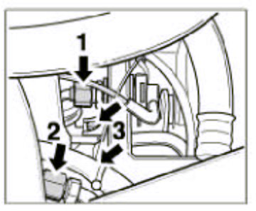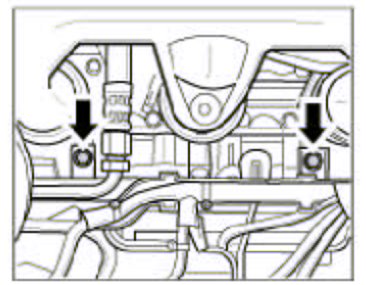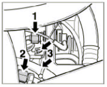 11. Fit the connectors of the main wiring harness -arrows- in the engine compartment on the right.