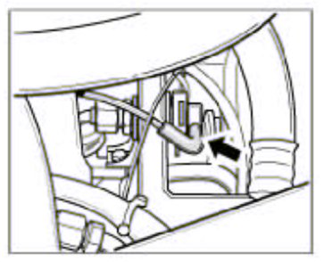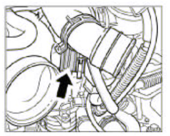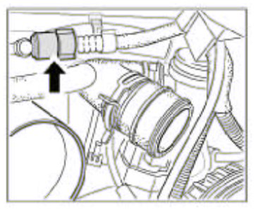 3. Undo the hose of the Y-shaped pressure pipe. To do so, undo the hose clamp -arrow- and pull the hose off the Y-shaped pressure pipe.
