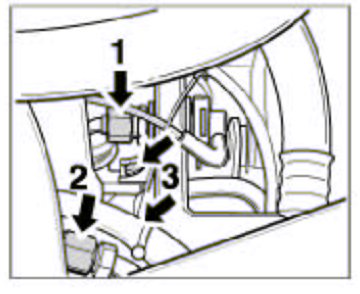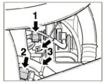 16. Disconnect the activated carbon filter lead. To do so, disconnect the coupling -arrow-.