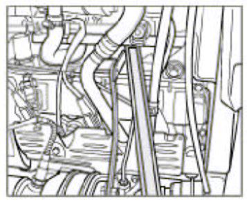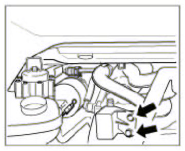 43. Connect the vent line of the coolant expansion tank. Fasten hose clamp.