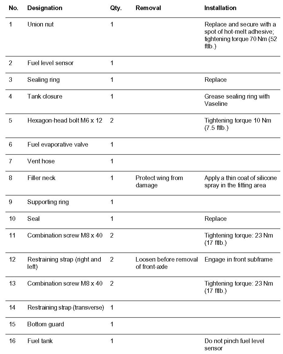 Removing And Installing Fuel Tank