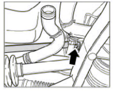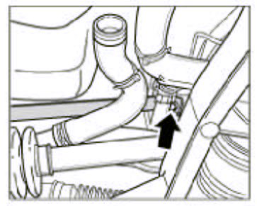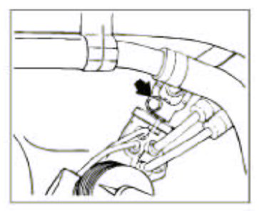 6. Clip vent line into the two holders-arrows- on the coolant pipes.