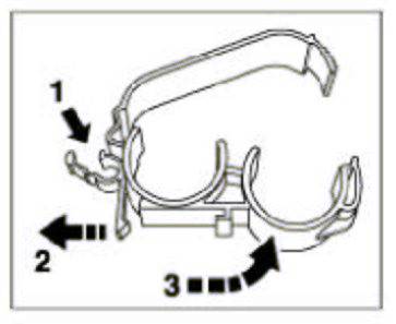 20. Remove both plastic holders complete with coolant pipes from the body. To do this, pull back the tab on each holder -2-, press the entire holder forwards and up -3- and remove the pipe package together with both holders to the rear. Remove pipes from the plastic holders in the wheel wells. Observe installation position of the coolant pipes.