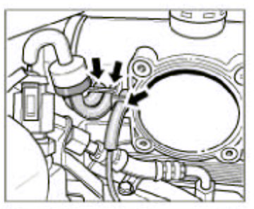 8. Connect the three vacuum hoses -arrows- on the intake distributor.
