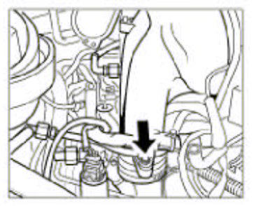 9. Remove the activated carbon filter lead. To do so, disconnect the plug connection on the bleeder valve -arrow- and disconnect the coupling on the pressure pipe.