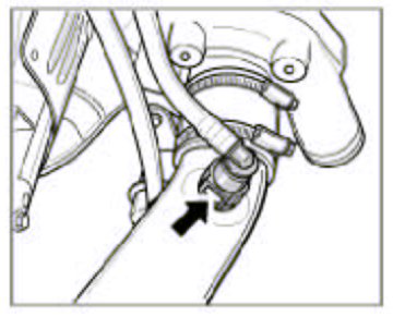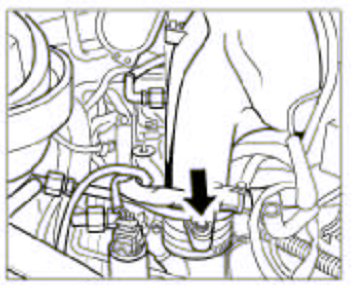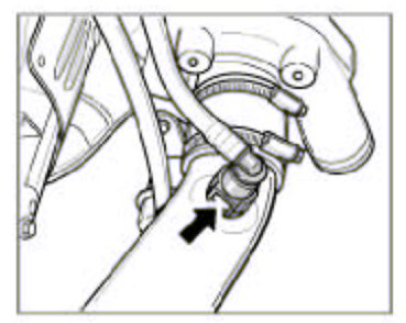 9. Clip the vacuum line -arrow- on to the strain relief strut.