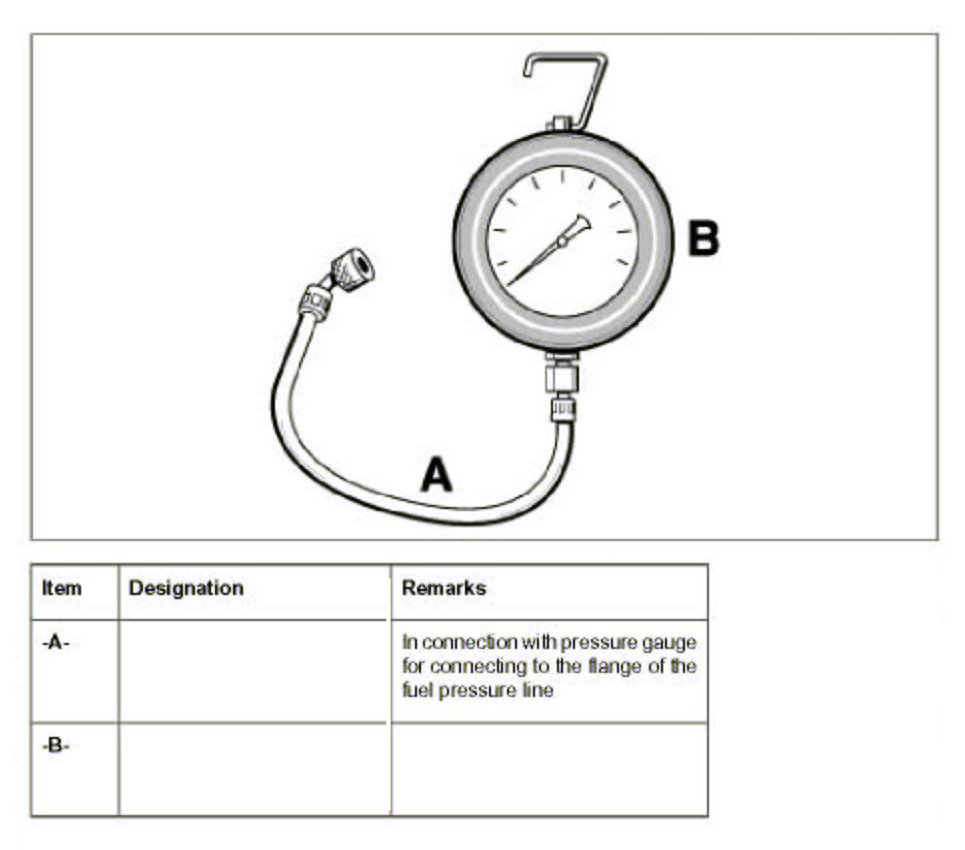 9. To check the engine while it is idling, connect the pressure gauge as described above and start the engine. Switch off the engine after reading the fuel pressure.